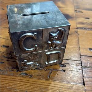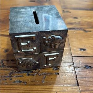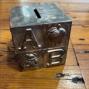 Vintage Silver Plated Alphabet Animal Piggy Coin Bank for Children 3” X 3”