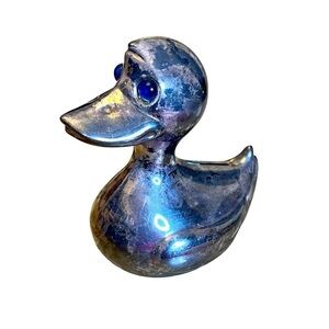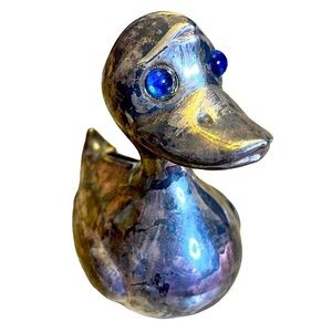 Vintage Silver Plated Duck Coin Bank Blue Eyes Denmark Kitschy Collectible