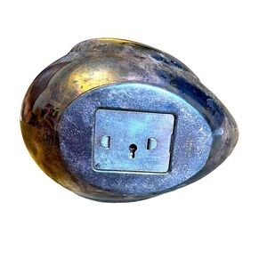 This cute silver plated duck bank was made in Denmark. The patina has been left to accentuate its vintage nature.