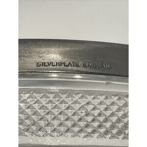 Vintage Silver Plated Edged Crystal Sugar Bowl From England - With Spoon