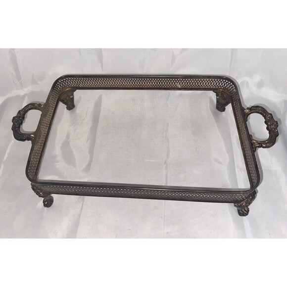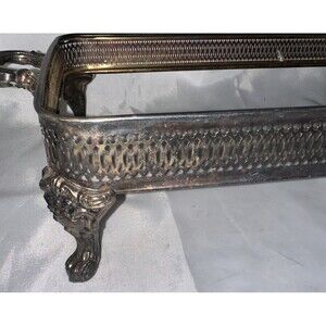 Vintage Silver Plated Footed Casserole Dish Holder Serving Tray 14.5 x 9.5 in