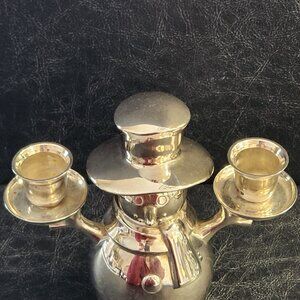 Vintage Silver Plated Happy Smiling Snowman Double Taper, Candle Holder, Holiday