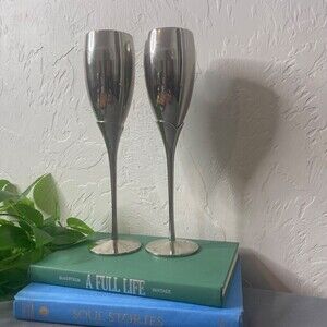 Vintage Silver Plated Long Stem Tulip Goblets Wine Flutes Set Of 2 10 Inch Tall