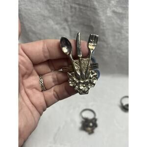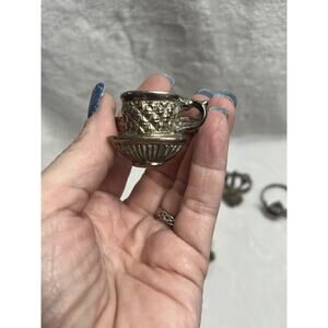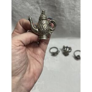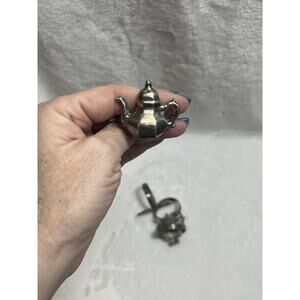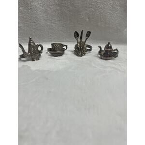 Vintage Silver Plated Napkin Rings Teapot Tea Kettle Silverware Teacup Set of 4
