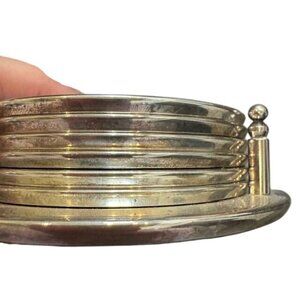 Vintage Silver Plated Noel Coasters Set Of 6 With Green Felt Backing