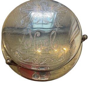 This elegant set of six silver-plated coasters features an etched Noel design and green felt backing, combining functionality with festive charm.