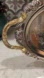 Beautiful vintage silver plated serving tray with ornate gold handles. This item sells for $80-$100 on other sites. The stamp on bottom says “made in Hong Kong. This tray serves as a great addition to your cottage core style but can be used in many facets such as a bar/liquor tray, centerpiece, china cabinet, hang on the wall by adding a plate hanger or as part of your bedroom decor for makeup, hair accessories, candles and more. Make an offer today!