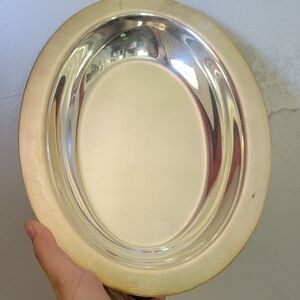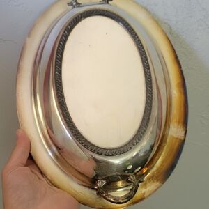 Vintage Silver Platter Oval Shaped Serving Plate Handles