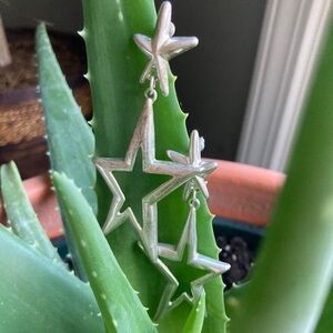 Great pre-owned condition, no defects other than some minor signs of use. Super unique and fun 70s star earrings! They’d be the perfect addition to a Barbie outfit! I don’t know exactly what they’re made of but they’re not super heavy, but definitely heavier than aluminum. Posts with cone backings. A little over 3” long.