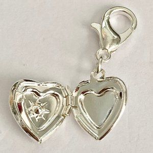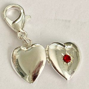 Vintage Silver Red Heart Locket Pendant Charm Victorian Photo Picture Plated