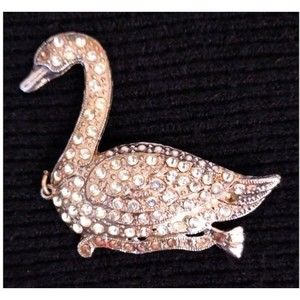 This listing is for a Beautiful Vintage Silver Rhinestone Metal Swan Bird Brooch Pin 2". The brooch is not signed. This item has some wear and is missing a few small rhinestones. See pictures as part of description. If you have any questions, please feel free to ask. Thank you.