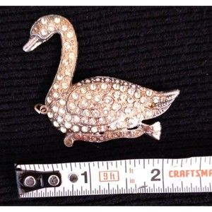 Vintage Silver Rhinestone Metal Swan Bird Brooch Pin 2"