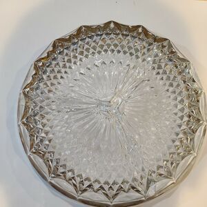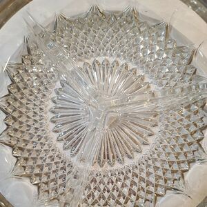 Vintage Silver Rim Lead Crystal Divided 3 Sectioned Shallow Serving Bowl Dish. Condition is "Used". Shipped with USPS Priority Mail.