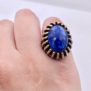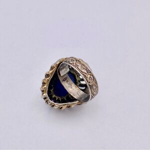 Elegant vintage ring featuring a vibrant blue stone set in silver. Unique design with intricate detailing.