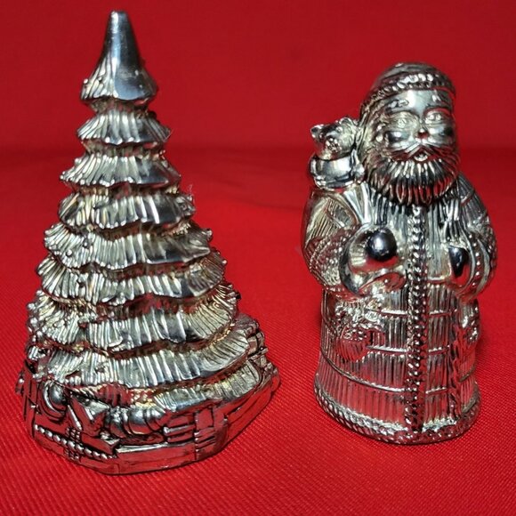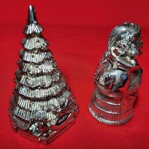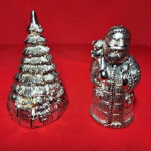 Vintage Silver Santa Claus Christmas Tree Salt and Pepper Shakers