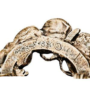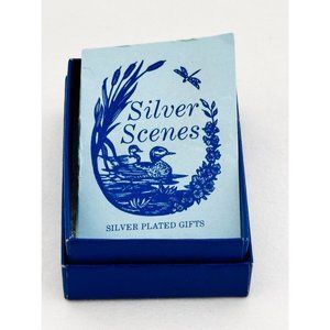 Vintage Silver Scenes are unique designs by Maureen Story Jones inspired by the countryside in Wales. This is a butterfly and flower scene, which is silver plated pewter. Very good overall condition. It is signed and dated on back (1988). With the original box. The brooch size is approx. 1.25" in diameter.