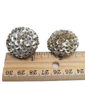 vintage clip-on earrings, silver sequin earrings, retro jewelry, round earrings, metallic earrings, costume jewelry, statement earrings, vintage accessories, antique earrings, sparkling earrings, clip-on jewelry, retro sequin design, classic earrings