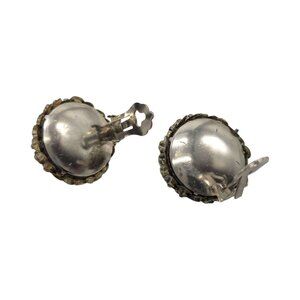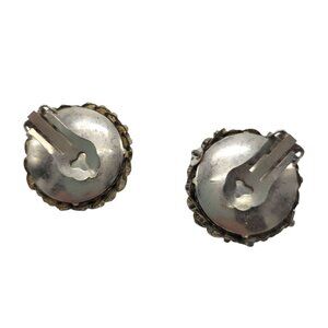 These vintage clip-on earrings feature a stunning arrangement of metallic sequins, radiating a timeless charm. Perfect for adding a touch of retro elegance to any ensemble.