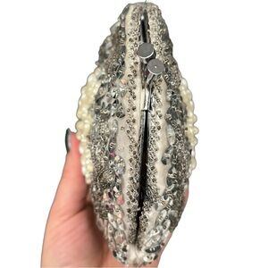 Vintage Silver Sequin and Bead Floral Kisslock Coin Pouch Crossbody Mini Bag