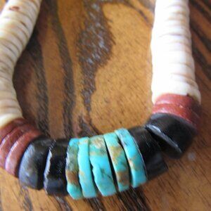Vintage Silver Shell Turquoise Coral Onyx Choker Santo Domingo Pueblo
