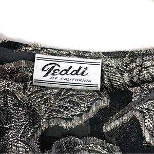 Vintage Silver Sparkling Top Boat Neck Rose Print Celebration Metallic