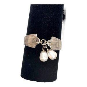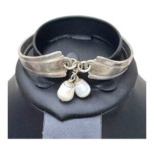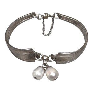 Vintage Silver Spoon Handle Bracelet Silverware Pearl Drops Elegant Upcycled 7"