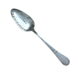 This stunning Monogrammed Letter B Vintage Silver Spoon Artisan Pendant Handmade Necklace from Artisan Jewelry boasts a unique, vintage silverware style. Crafted from high-quality silver, it's a perfect accessory to add a personalized, antique touch to any outfit.