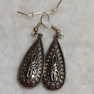 Vintage Silver Tear Drop Earrings with circular and floral designs