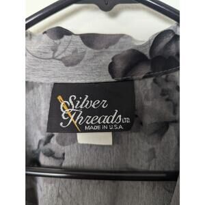 Vintage Silver Threads LTD Bomber Jacket Size XL Full Zip Silver Black Floral
