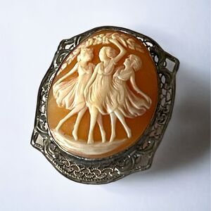 Vintage Silver Three Graces Shell Cameo Filigree Pin Pendant 3 Muses Brooch