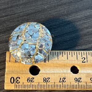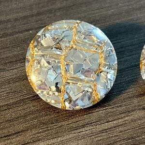 Vintage Silver Tinsel Confetti Lucite Clip On Earrings 1 1/8”