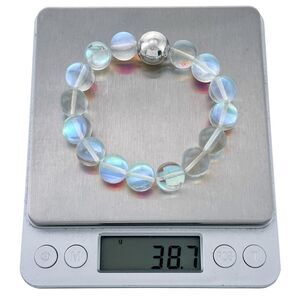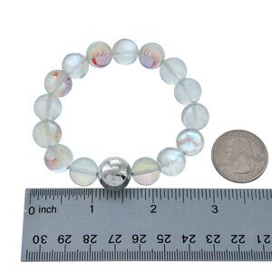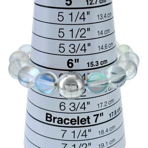Title: Vintage Silver Tone 12mm Opalescent Frosted Glass Bead Stretch Bracelet 6.25"