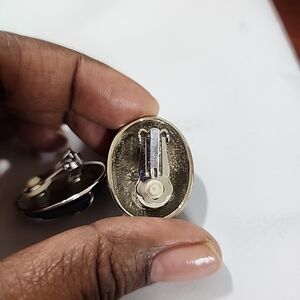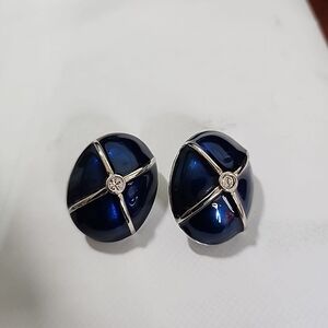 Vintage Silver Tone 80S IVANA TRUMP Blue Enamel Rhinestone Clip on Earrings