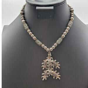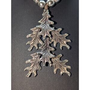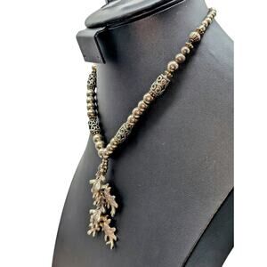 Vintage Silver Tone Bali Bead Layered Leaf Pendant Necklace W/ Hook Clasp