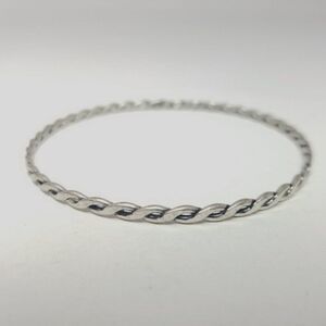 Vintage Silver Tone Bangle Bracelet, Flat Overlapping Design, Stacking Estate