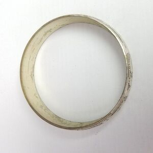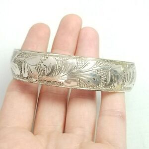 Vintage Silver Tone Bangle Bracelet, Etched Leaf Design Stacking Estate Unsigned