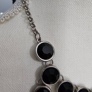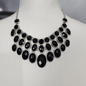 Vintage Silver Tone Black Faceted Multi Stone Chunky Bib Statement Necklace VTG