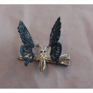 Vintage Silver Tone & Blue Butterfly Hair Clip Barrette