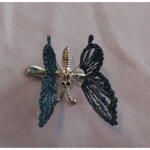 This vintage butterfly hair clip features intricate silver and blue detailing, perfect for adding a touch of elegance to any hairstyle.
