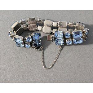 Vintage Silver Tone Blue Crystal Bracelet With Safety Clasp