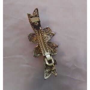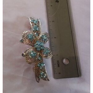 Add a touch of elegance to your hairstyle with this vintage silver barrette, adorned with blue rhinestones in a delicate floral design.