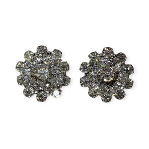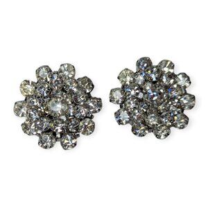 Vintage Silver Tone & Clear Rhinestone Clip On Earrings