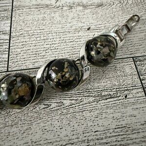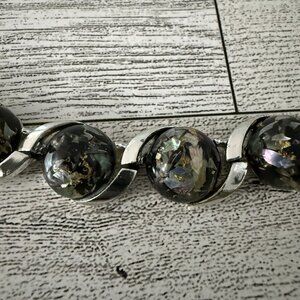 Vintage Silver Tone Confetti Lucite Link Bracelet Collector’s Item