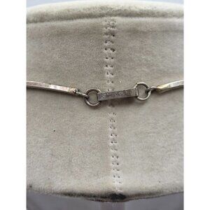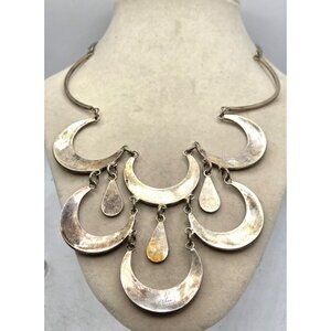 This vintage necklace features crescent moon and teardrop pendants with a striking blue enamel finish. Its silver tone adds elegance and charm. Alpaca Mexico