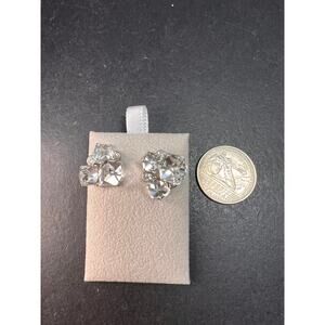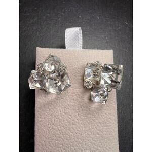 Vintage Silver Tone Crystal Cube Rhinestone Cluster Earrings