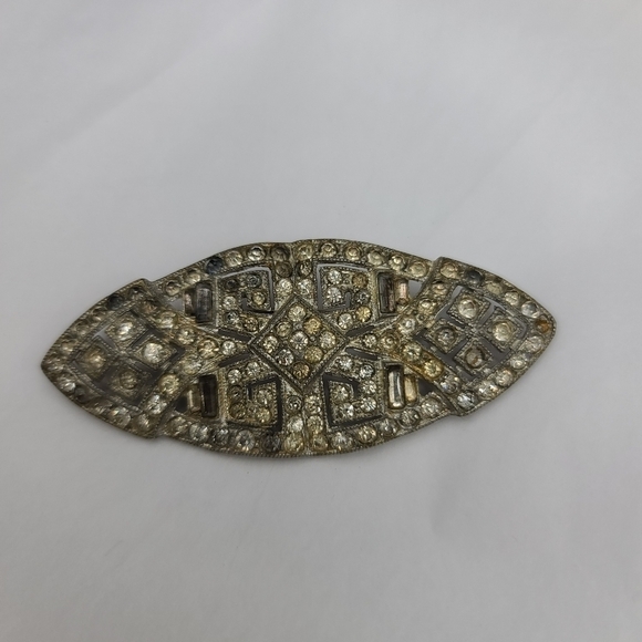 Vintage Silver Tone & Crystal oval pin