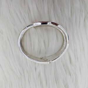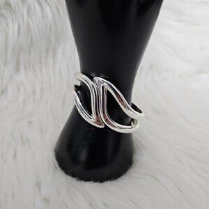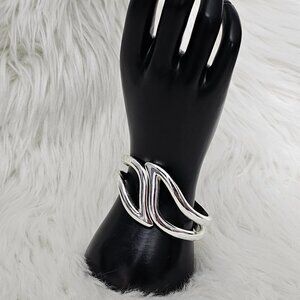 Vintage Silver Tone Cutout Hinged Bangle Statement Bracelet VTG
