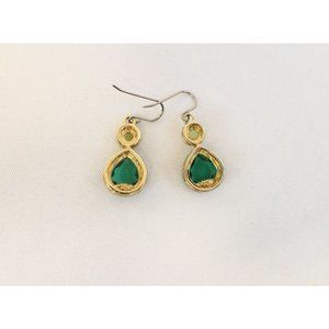 Gold tone vintage earrings, with clear green and yellow gems. Weighs 5.5g.
