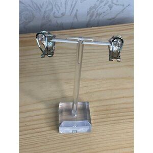 These vintage earrings exude a classic charm, featuring a silver-tone finish with blue cat's eye stones. Their retro elegance adds sophistication to any collection.