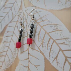 Vintage Silver Tone Earrings Lightweight Dangle Drop, Black Pink Elegant